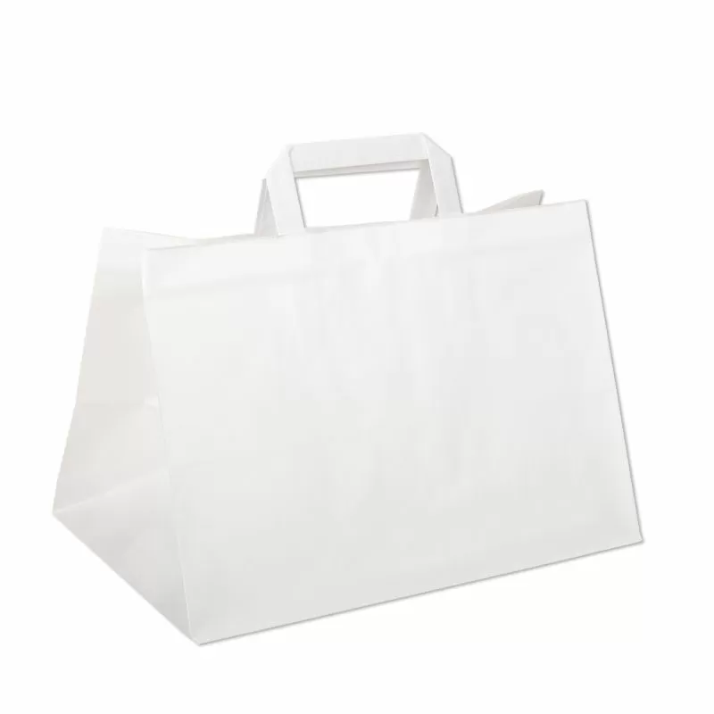 Бяла чанта XL, за меню с дръжки и широко дъно, НИСКА 32/22/24 см - 25 бр / 250 бр.