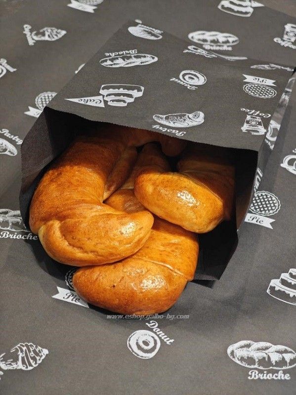 Хартия за закуски, черна маслоустойчива, с печат BAKERY