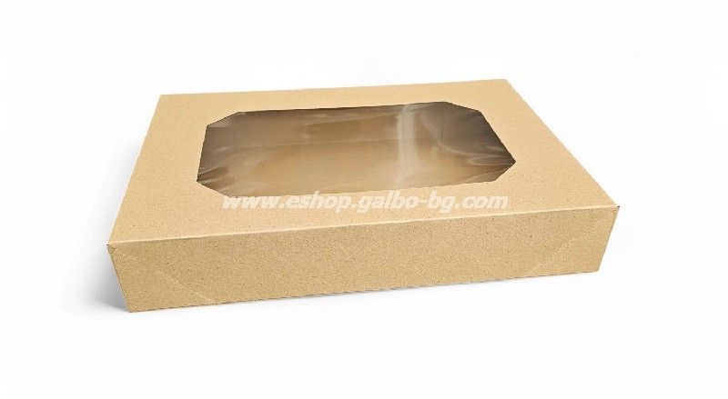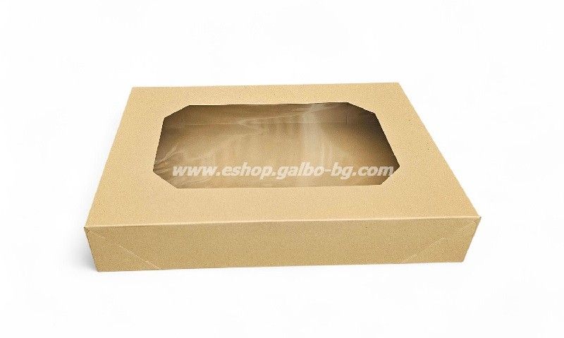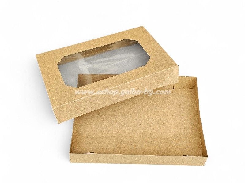 Комплект кутия с прозорец и отделен капак за кетъринг, КАФЯВА 457х317х80 мм, 50 броя