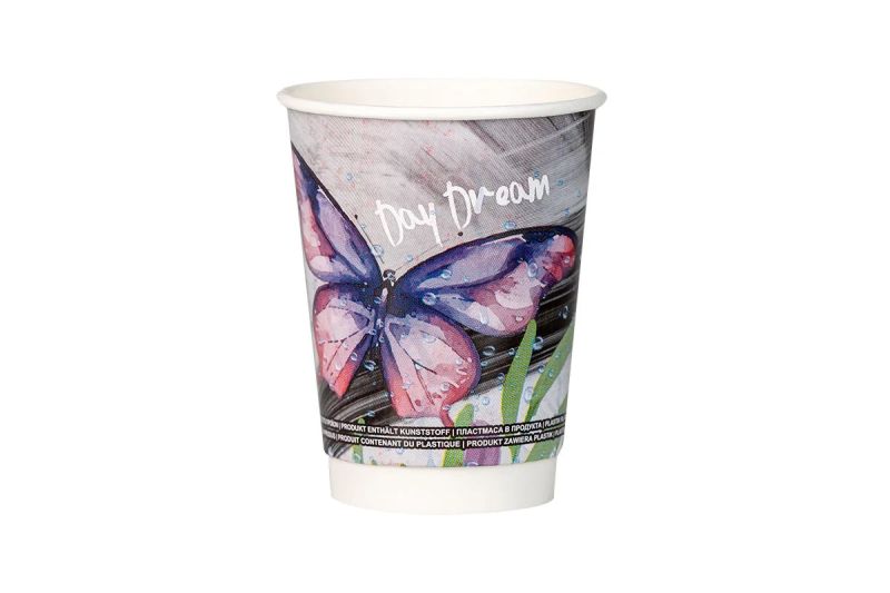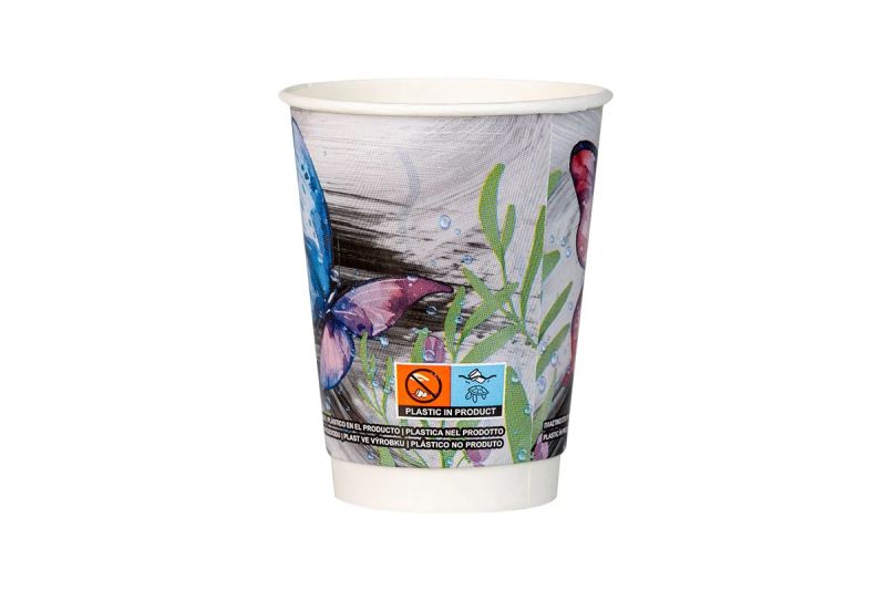 Kартонена двустенна чаша 14 oz - дизайн Пеперуда, 350 мл полезен обем